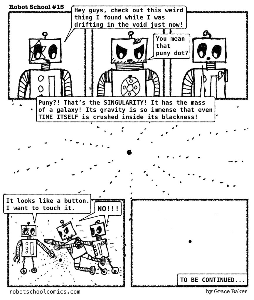 Singularity G. E. Baker Into the Black Hole December 17, 2025December 17, 2025 The robots are going on Christmas break. Find out what happens next in January 2026! SHARE THE ROBOT JOY: Share on Facebook (Opens in new window) Facebook Share on X (Opens in new window) X Share on Tumblr (Opens in new window) Tumblr Share on Threads (Opens in new window) Threads Share on Reddit (Opens in new window) Reddit Like Loading... Published December 17, 2025December 17, 2025